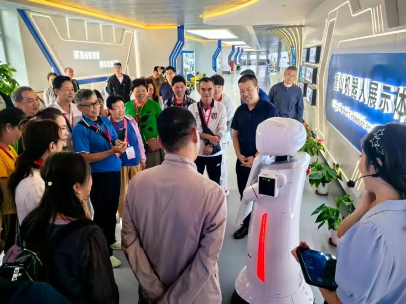 参访团一行在唐山机器人展示体验中心与机器人“小博士”互动